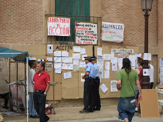 Los compañeros de Barcelona mejoran favorablemente. Les han expropiado material informático, por el cual deben presentar la factura si quieren recuperarlo. No les ha llegado ningún comunicado de disculpa ni nada por el estilo. El movimiento sigue sin ningún problema policial y están empezando a comentar ideas propuestas desde Coruña, como el buzón de sugerencias.